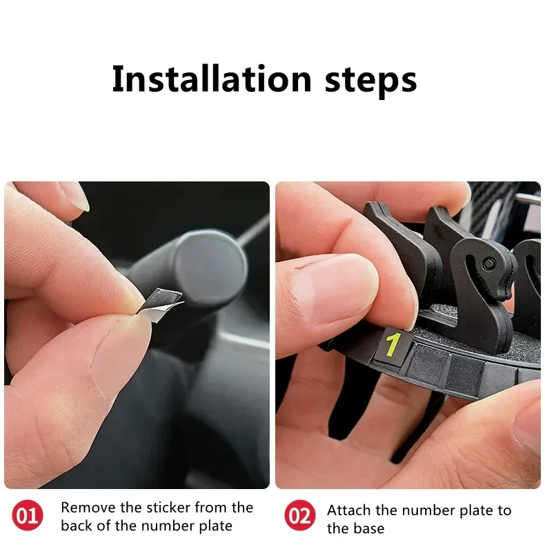 Installation of parking numbers: Cut out the numbers with scissors, and place the cut numbers in the number slot one by one.