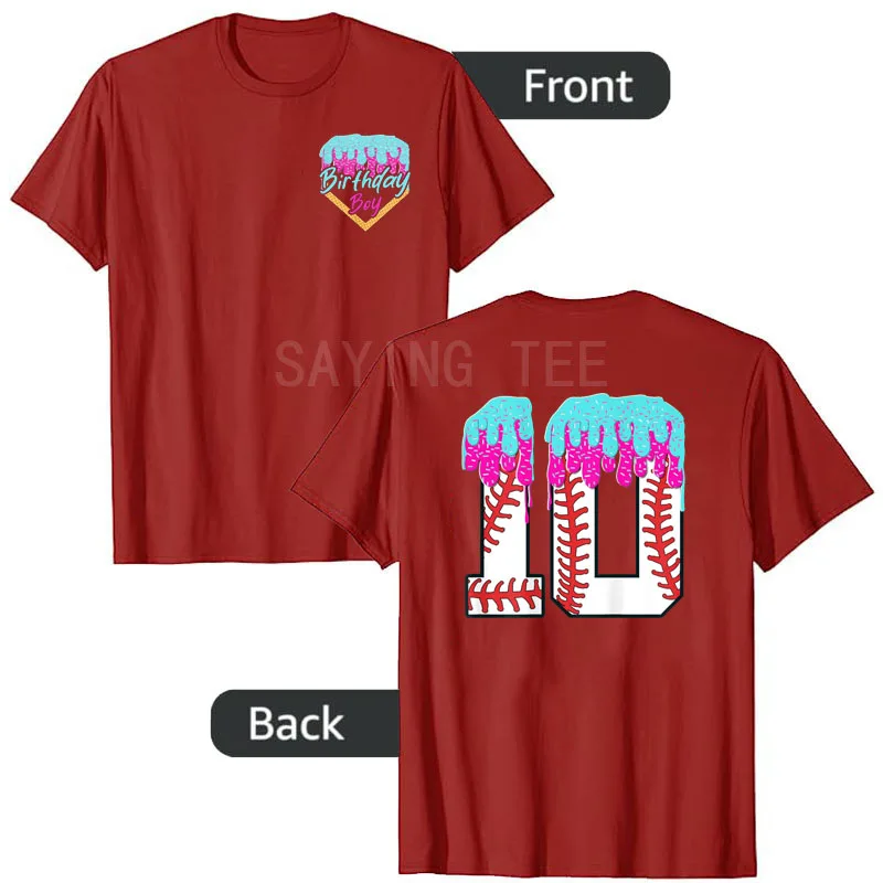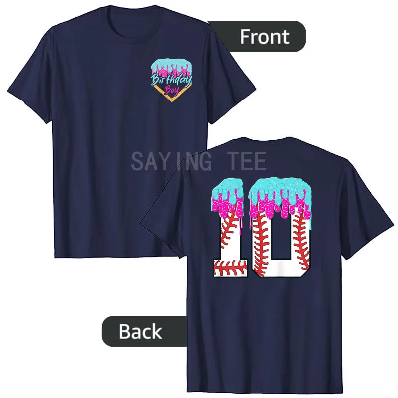 Celebrate your baseball loving boy’s bday with this fun and colorful birthday apparel! Features a waffle cone design with “Birthday Boy” on the front, and a big number 10 on the back with baseball stitches & sprinkle frosting perfect for 10th birthday Tees gifts.